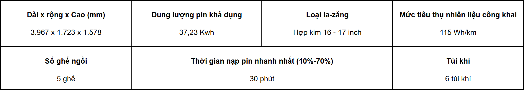 - Quãng đường di chuyển được tính toán dựa trên kết quả kiểm định theo quy chuẩn toàn cầu (NEDC hoặc WLTP). Quãng đường di chuyển thực tế có thể giảm so với kết quả kiểm định, phụ thuộc vào tốc độ lái xe, nhiệt độ, địa hình, thói quen sử dụng của người lái, chế độ lái được cài đặt, số lượng hành khách, và các điều kiện giao thông khác.